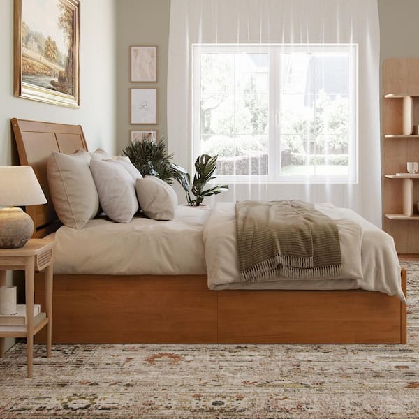 Portland Light Toffee Natural Bronze Solid Wood Frame Queen Platform Bed with Footboard and Storage Drawers