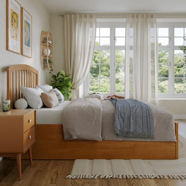 Richmond Light Toffee Natural Bronze Solid Wood Frame Full Platform Bed with Footboard and Twin Trundle