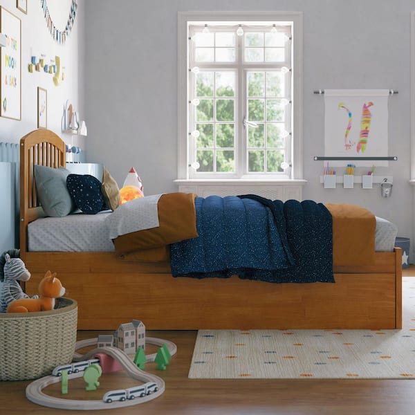 Richmond Light Toffee Natural Bronze Solid Wood Frame Twin Platform Bed with Footboard and Twin Trundle