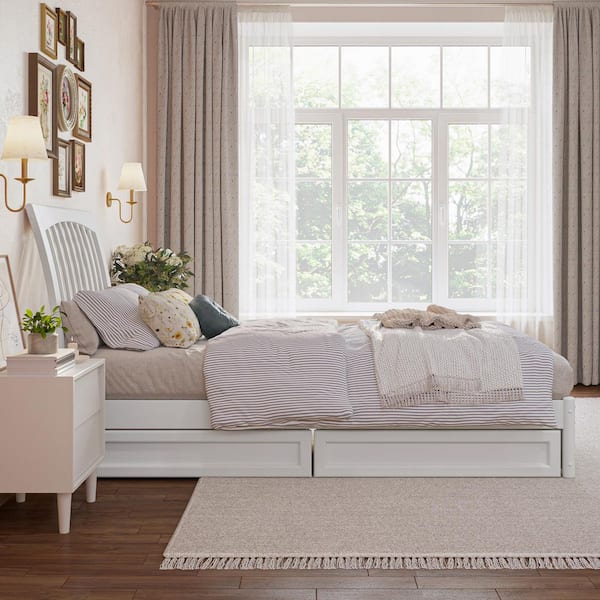 Roslyn White Solid Wood Frame Twin XL Platform Bed with Panel Footboard and Storage Drawers