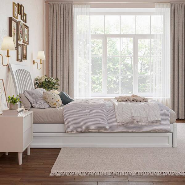 Roslyn White Solid Wood Frame Twin XL Platform Bed with Panel Footboard and Twin XL Trundle