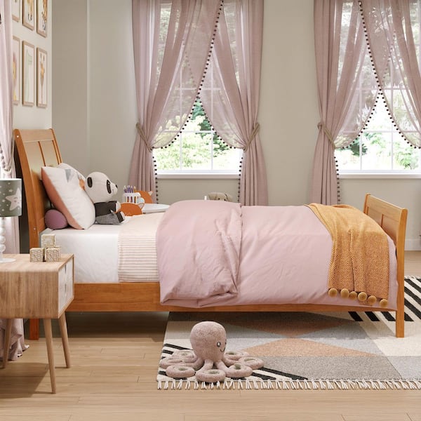 Valencia Light Toffee Natural Bronze Solid Wood Frame Twin Low Profile Sleigh Platform Bed with Matching Footboard