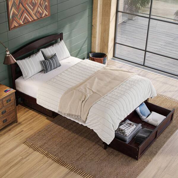 Warren, Solid Wood Platform Bed with Foot Drawer, Full, Espresso