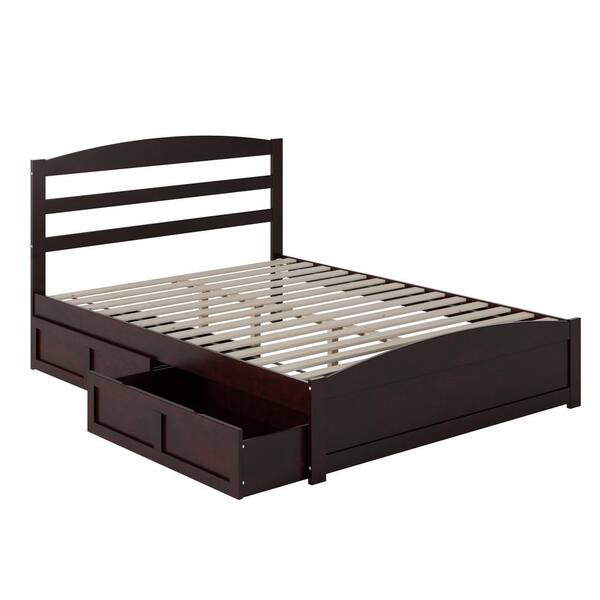 Warren, Solid Wood Platform Bed with Footboard and Storage Drawers (Set of 2), Queen, Espresso
