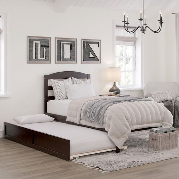 Warren, Solid Wood Platform Bed with Twin XL Trundle, Twin XL, Espresso