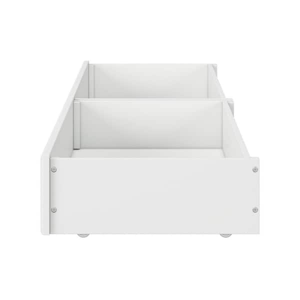 White Mid-Century Modern Solid Wood Queen-King-Twin XL Under Bed Storage Drawers