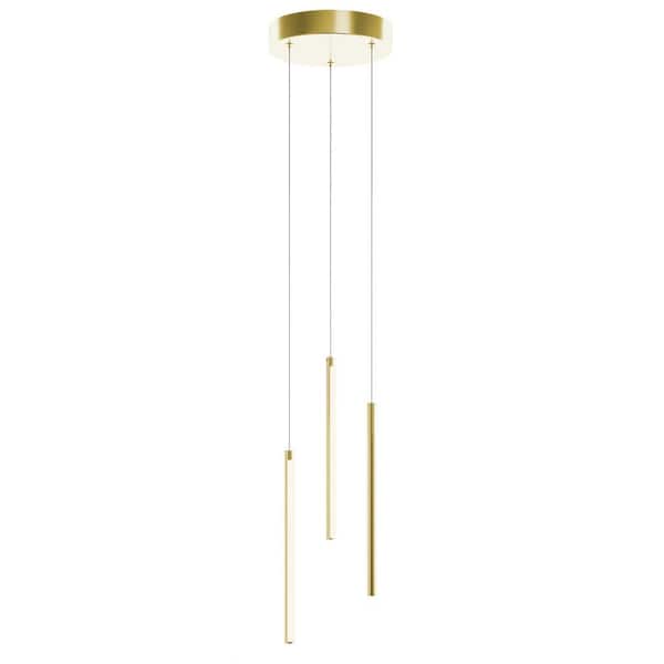 Rosemont 12.75-Watt 3-Light Satin Brass Shaded Integrated LED Pendant Light with White Acrylic Shade