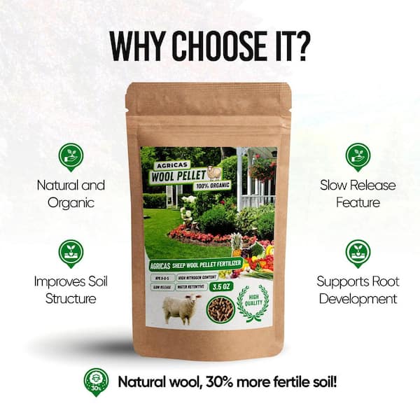 0.44 lb Organic Granular Fertilizer - 100% Sheep Wool, 9-0-5 NPK, Slow Release, Water-Retentive (3.5 oz./Pack, 2-Pack)
