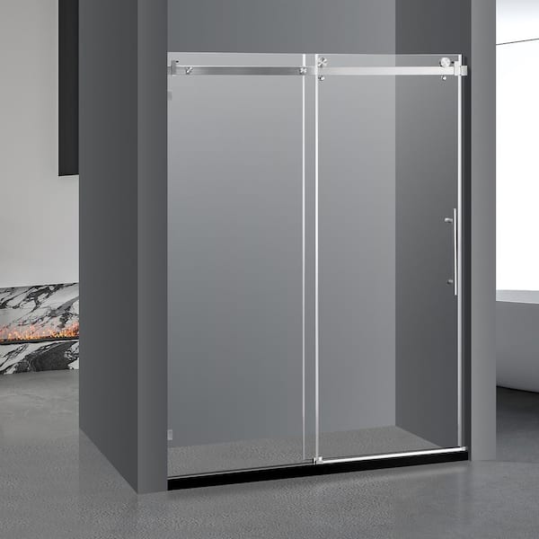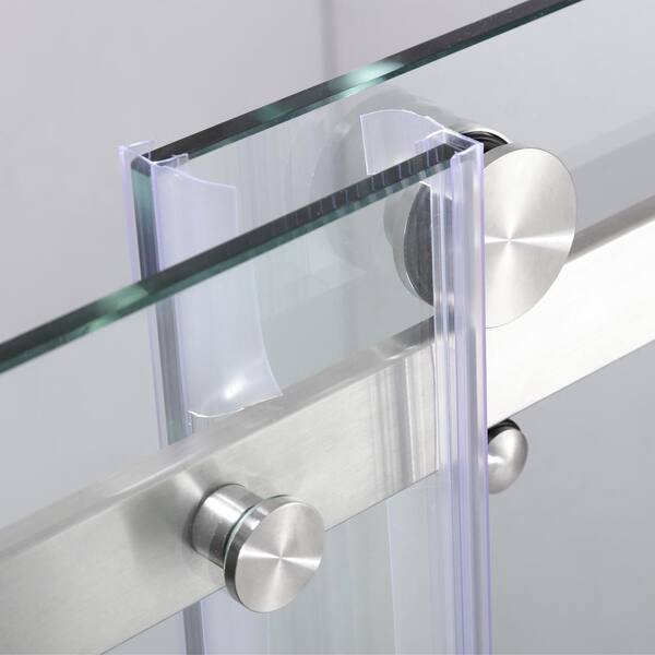 AIM 60 in. W. x 76 in. H Sliding Square-Frameless Shower Door in Brushed Nickel Finish with Clear Glass