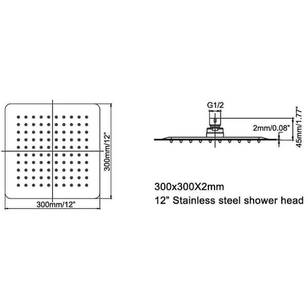 1-Spray Pattern with 1.8 GPM 12 in. Wall Mount Rain Fixed Shower Head High Pressure Adjustable Showerhead in Matte Black