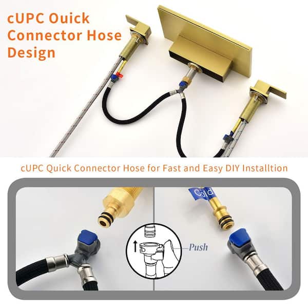 2-Handle Waterfall Deck-Mount Roman Tub Faucet with Valve Modern Brass 3-Hole Bathtub Faucets in Brushed Gold