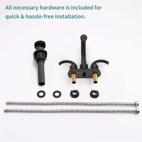 4 in. Centerset Double Handle Bathroom Faucet with Drain Assembly Brass 3 Hole Bathroom Vanity Taps in Oil Rubbed Bronze