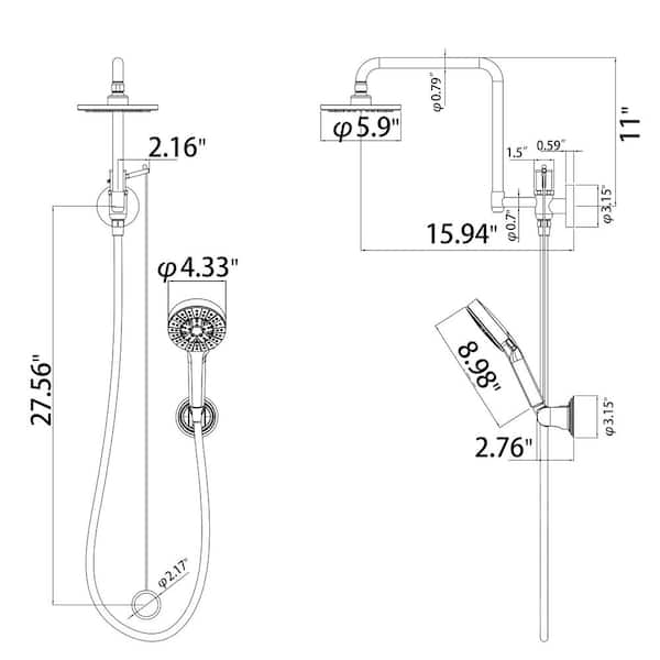 6-Spray 6 in. Wall Mount Dual Shower Head and Handheld Shower Head Combo 1.8 GPM in Polished Chrome(Valve Excluded)