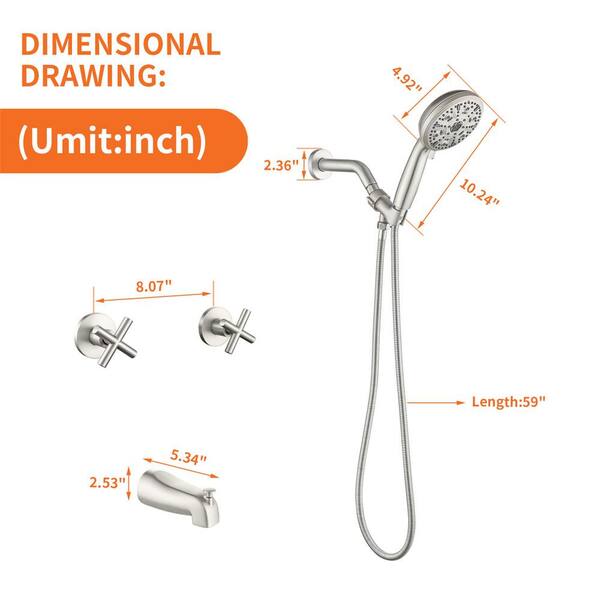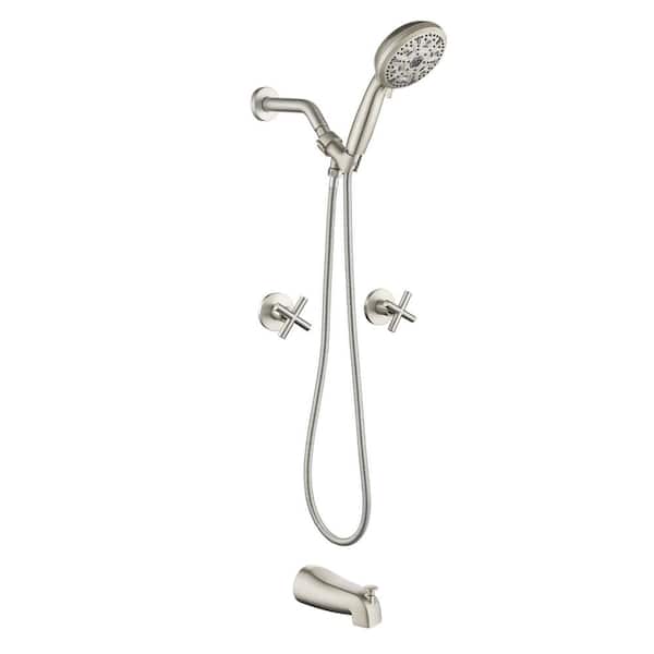 Double Handle 10-Spray Tub and Shower Faucet 1.8 GPM Brass Wall Mount Shower Faucet Set in Brushed Nickel Valve Included