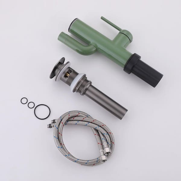 LED Temperature Display Single Handle Single Hole Bathroom Faucet with Drain Assembly and Rotating Spout in Olive Green