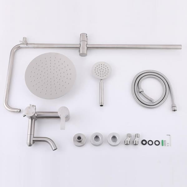 Single Handle 1-Spray Outdoor Tub and Shower Faucet 1.8 GPM 10 In Exposed Shower System in Brushed Nickel Valve Included