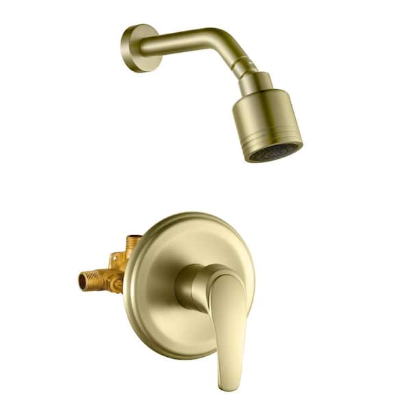 Single Handle 1-Spray Wall Mount Shower Faucet 1.8 GPM with Pressure Balance Brass Shower Faucet Set in Brushed Gold