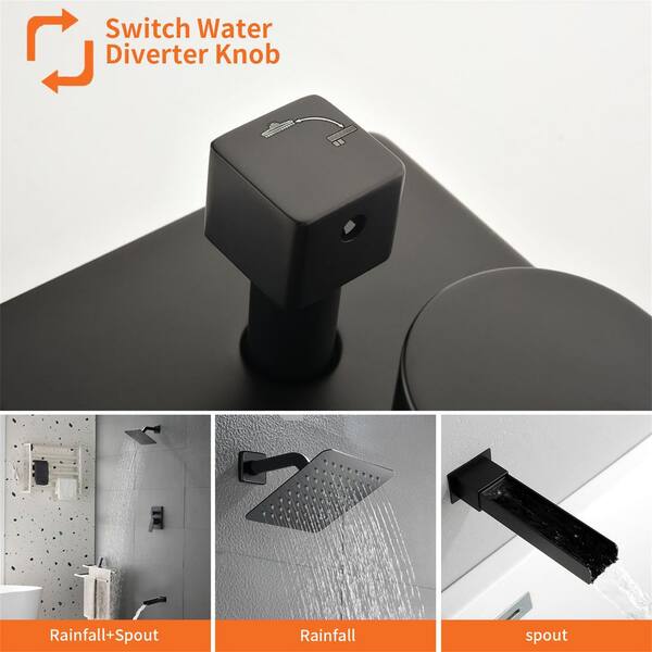 Single Handle 1-Spray Wall Mount Tub and Shower Faucet 1.8 GPM Brass 8 in. Shower System in Matte Black Valve Included