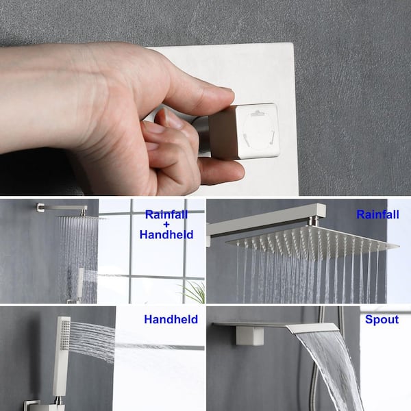 Single Handle 1-Spray Wall Mount Tub and Shower Faucet 1.8 GPM Waterfall Shower System in Brushed Nickel Valve Included