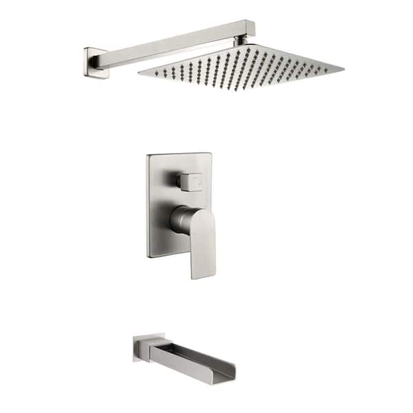 Single Handle 1-Spray Waterfall Tub and Shower Faucet 1.8 GPM 10 in. Shower System in Brushed Nickel Valve Included