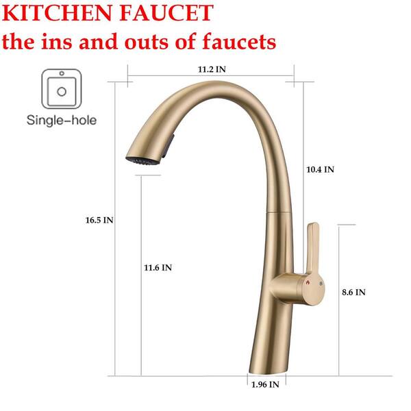 Single Handle 16.5 In. Stainless Steel Pull Down Sprayer Kitchen Faucet with 360 Degree Swivel Spout in Brushed Gold