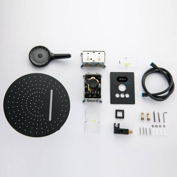 Single-Handle 3-Spray Thermostatic Shower Faucet 4.76 GPM with High Pressure Wall Mount Shower System in. Matte Black
