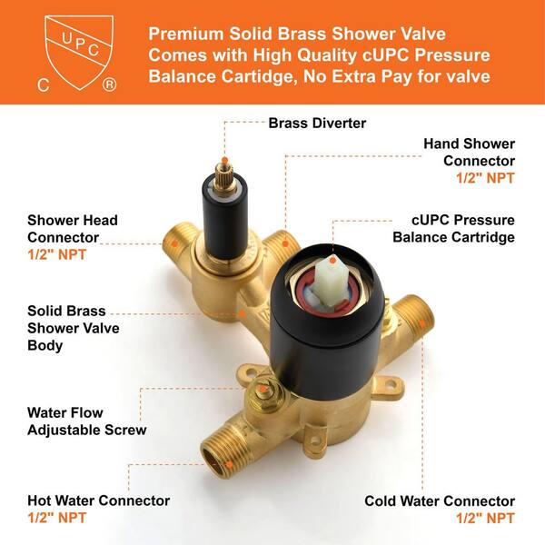 Single Handle 3-Spray Wall Mount Shower Faucet 1.8 GPM with Pressure Balance Brass 10 in. Shower System in Matte Black