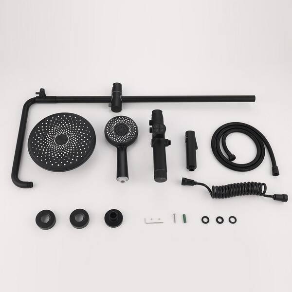 Single Handle 5-Spray Wall Mount Shower Faucet 1.6 GPM with Ceramic Disc Valves Exposed Shower System in. Matte Black