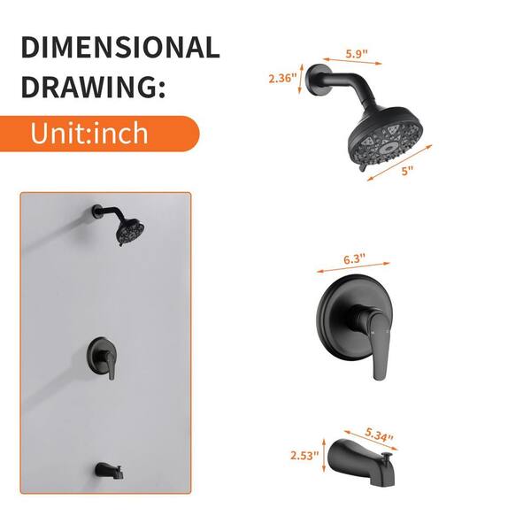 Single Handle 6-Spray Wall Mount Tub and Shower Faucet 1.8 GPM 5 In. Brass Shower System in Matte Black Valve Included