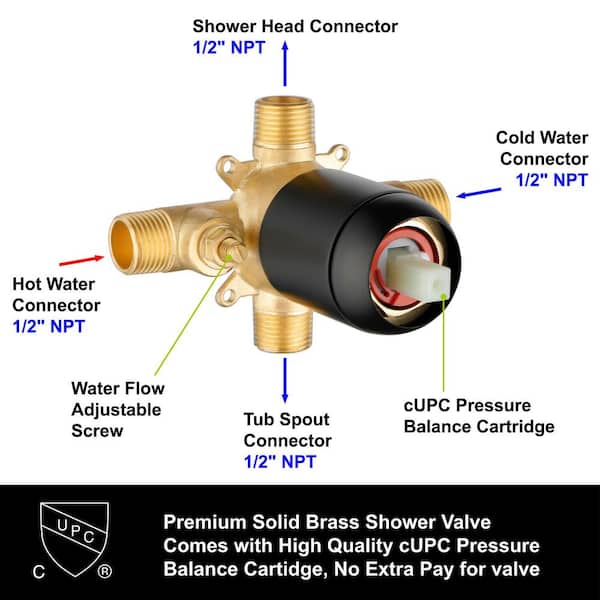 Single Handle 6-Spray Wall Mount Tub and Shower Faucet 1.8 GPM 8 in. Brass Shower System in Matte Black Valve Included