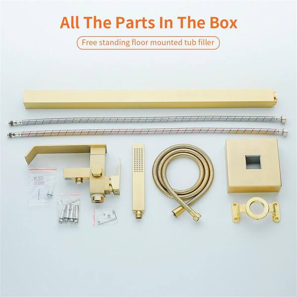 Single-Handle Freestanding Tub Faucet with Hand Shower Brass 1-Hole Waterfall Floor Mounted Tub Fillers in Brushed Gold
