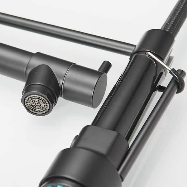 Single Handle Pull Down Sprayer Kitchen Faucet with Advanced Spray Brass Kitchen Sink Taps in Matte Black&Brushed Nickel