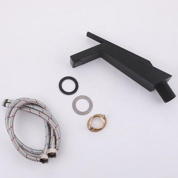 Single-Handle Single-Hole Bathroom Faucet with Valve Deck Mount Brass Bathroom Sink Taps in Matte Black