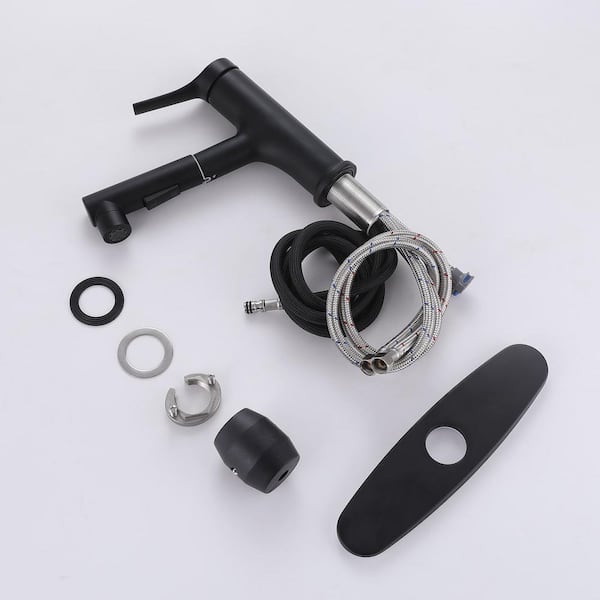 Single Handle Single Hole Pull Out Bathroom Faucet with Deckplate Stainless Steel Bathroom Basin Taps in Matte Black
