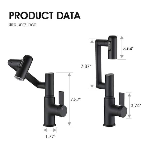 Single Handle Single Hole Temperature Display Bathroom Faucet with Rotating Spout Brass Bathroom Sink Tap in Matte Black