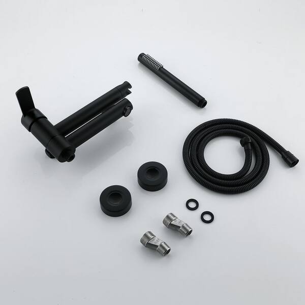 Single-Handle Wall-Mount Roman Tub Faucet with Hand Shower Brass 2-Hole Bathtub Fillers in. Matte Black