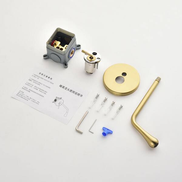 Single Handle Wall Mounted Bathroom Faucet Modern Single Hole Brass Bathroom Sink Taps in Brushed Gold