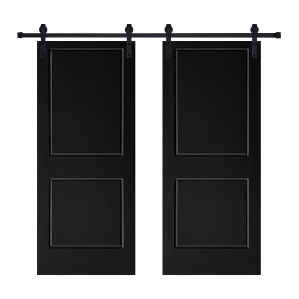 Double Modern 2-Panel 28 in. x 80 in. MDF Black Barn Sliding Door With Hardware kit
