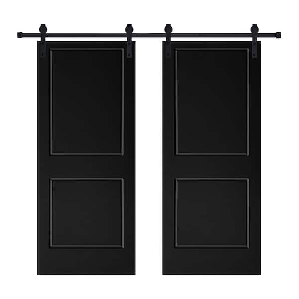 Double Modern 2-Panel 32 in. x 84 in. MDF Black Barn Sliding Door With Hardware kit