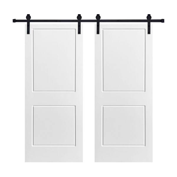 Double Modern 2-Panel 32 in. x 96 in. MDF White Barn Sliding Door With Hardware kit