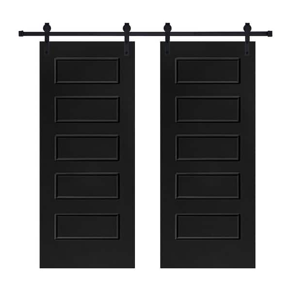 Double Modern 5-Panel 28 in. x 80 in. MDF Black Barn Sliding Door With Hardware kit