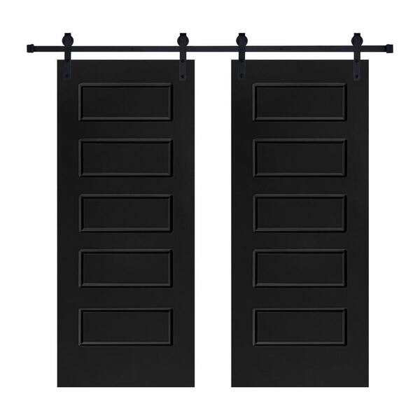 Double Modern 5-Panel 32 in. x 84 in. MDF Black Barn Sliding Door With Hardware kit