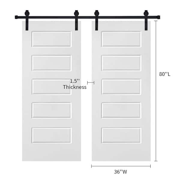 Double Modern 5-Panel 36 in. x 80 in. MDF White Barn Sliding Door With Hardware kit