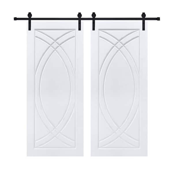 Double Modern Art Panel 56 in. x 80 in. MDF White Barn Sliding Door With Hardware kit