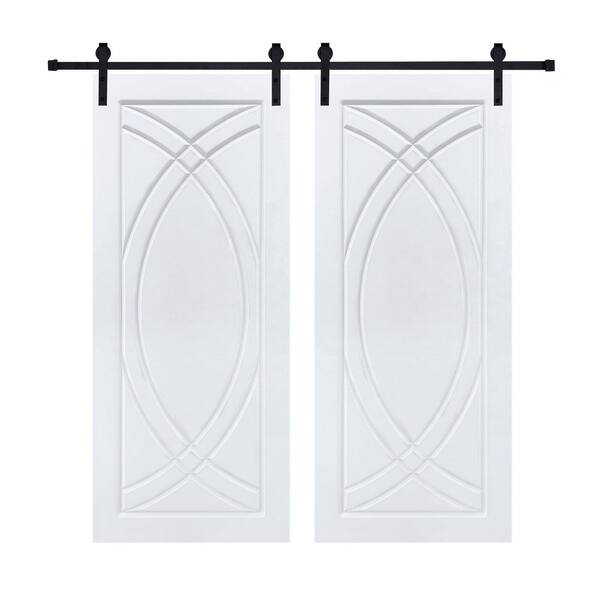 Double Modern Art Panel 84 in. x 96 in. MDF White Barn Sliding Door With Hardware kit