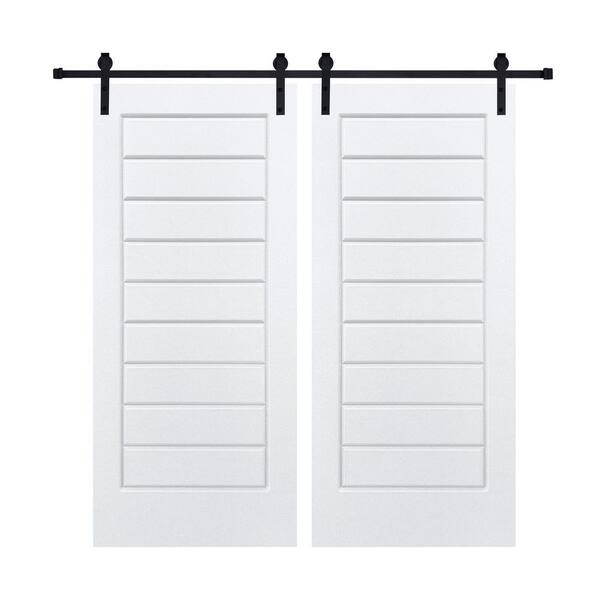 Double Modern Eight Panel 32 in. x 80 in. MDF White Barn Sliding Door With Hardware kit