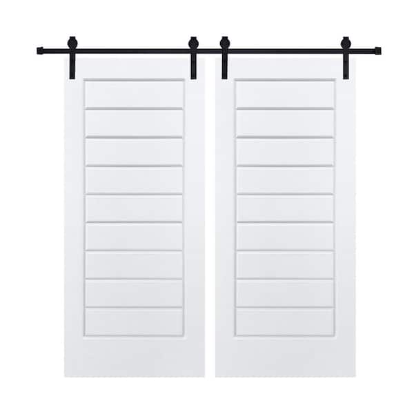 Double Modern Eight Panel 36 in. x 96 in. MDF White Barn Sliding Door With Hardware kit