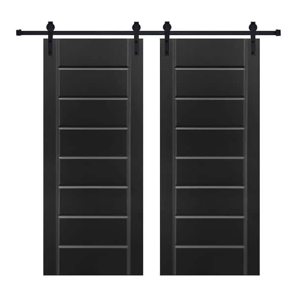 Double Modern Eight Panel 42 in. x 80 in. MDF Black Barn Sliding Door With Hardware kit