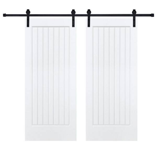 Double Modern Five Panel 32 in. x 84 in. MDF White Barn Sliding Door With Hardware kit