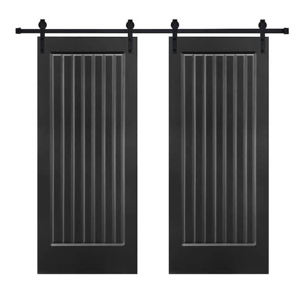 Double Modern Five Panel 36 in. x 80 in. MDF Black Barn Sliding Door With Hardware kit
